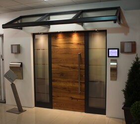Eine Kombination aus Holz und Aluminium verbindet die traditionelle Wohnatmosphäre einer Holztür mit der Beständigkeit einer hochwertigen Aluminium-Haustür.