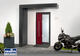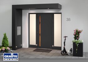 Die Design-Serie „Free-Style“ beinhaltet individuell gestaltete Rechteck-Vordächer, die sich durch klare, moderne Linien und For-men auszeichnen. Sie können sowohl an Bestandsbauten sowie an Neubauten angebracht werden. Besondere Design-Raffinessen der Haustür (z.B. Fräsungen, LED`s oder Einleger) spiegeln sich im Vordach bzw. im Seitenteil als Highlight des Eingangsbereiches wider. Der komplette Eingangsbereich mit Tür, Vordach, Seitenteilen und Zubehörteilen bis hin zu den Blumenkästen wird zusammen in unserer hauseigenen Pulver-Beschichtungsanlage lackiert. Dies gewährleistet eine absolute Farbgleichheit aller Bestandteile.