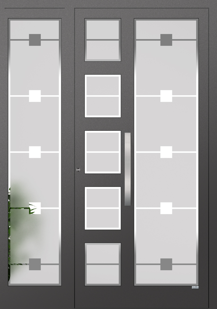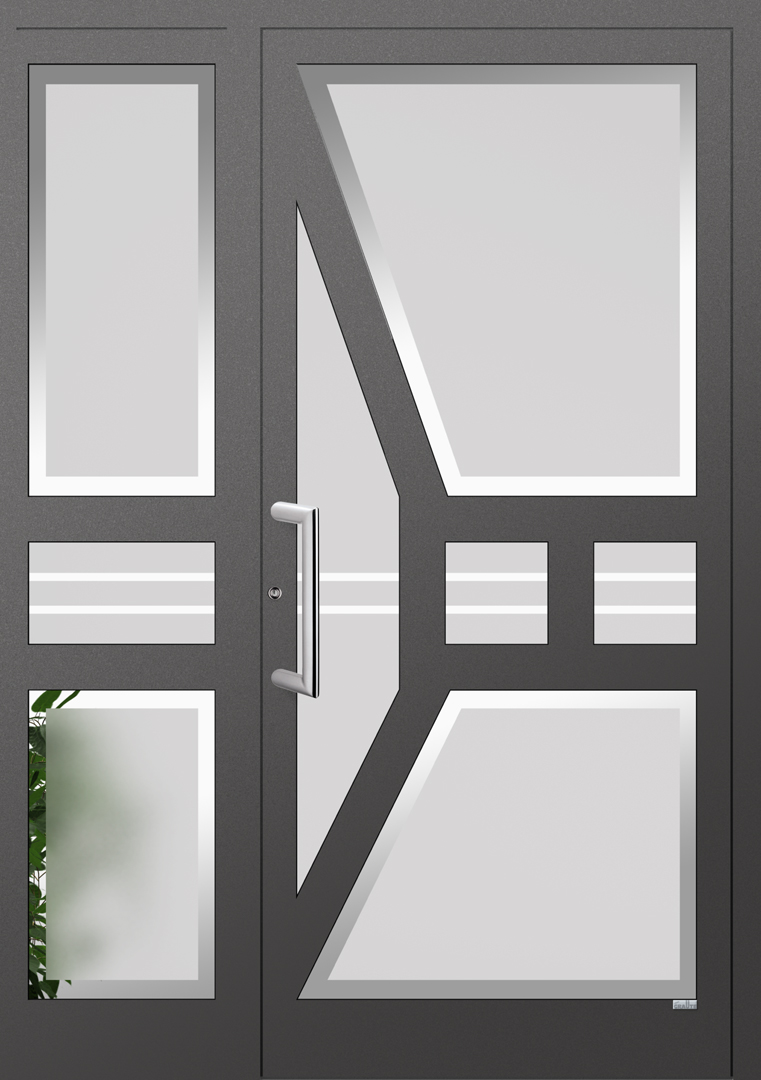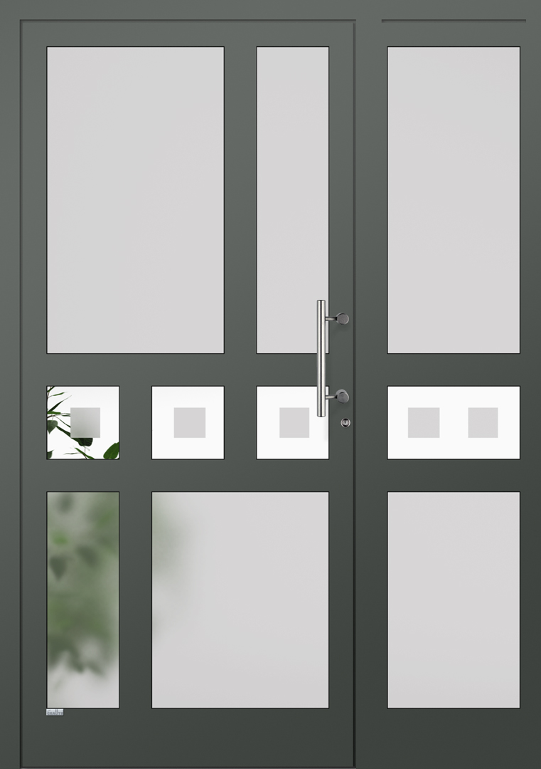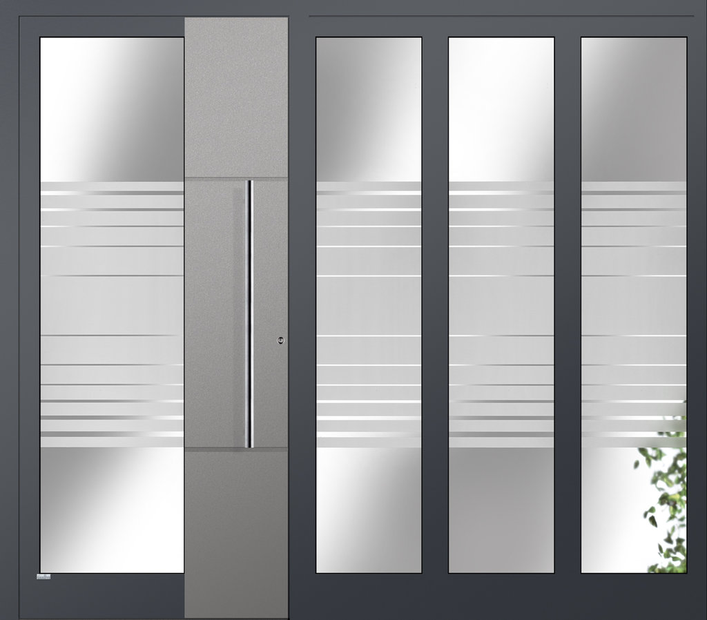 Elegante Haustüren sind für ein schnörkelloses Design bekannt. Besonders für Eingangsbereiche die eine lichtdurchflutende Konstruktion bevorzugen ist die Elegante Graute Türfüllung genau die richtige. Elegante Haustüren haben keine eingelassene Türfüllung sondern verfügt über Sprossen die bei Graute aus Aluminium bestehen. Jede Sprosse wird in einem aufwändigen Verfahren geschweisst und mehrfach Plan geschliffen sowie pulverbeschichtet. Die Freiräume von Elegante Haustüren werden mit besonders Schalldichten und thermisch abschirmenden Spezialglas geschlossen.