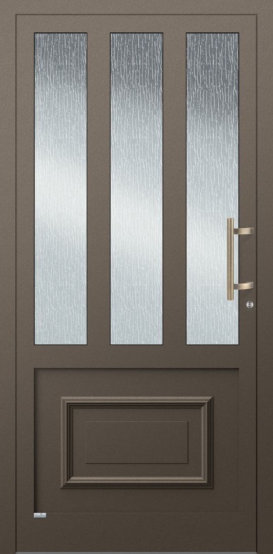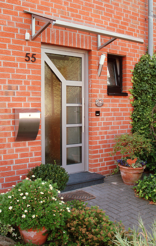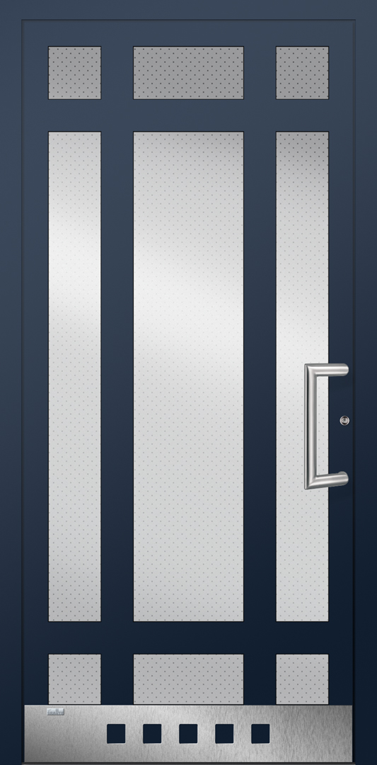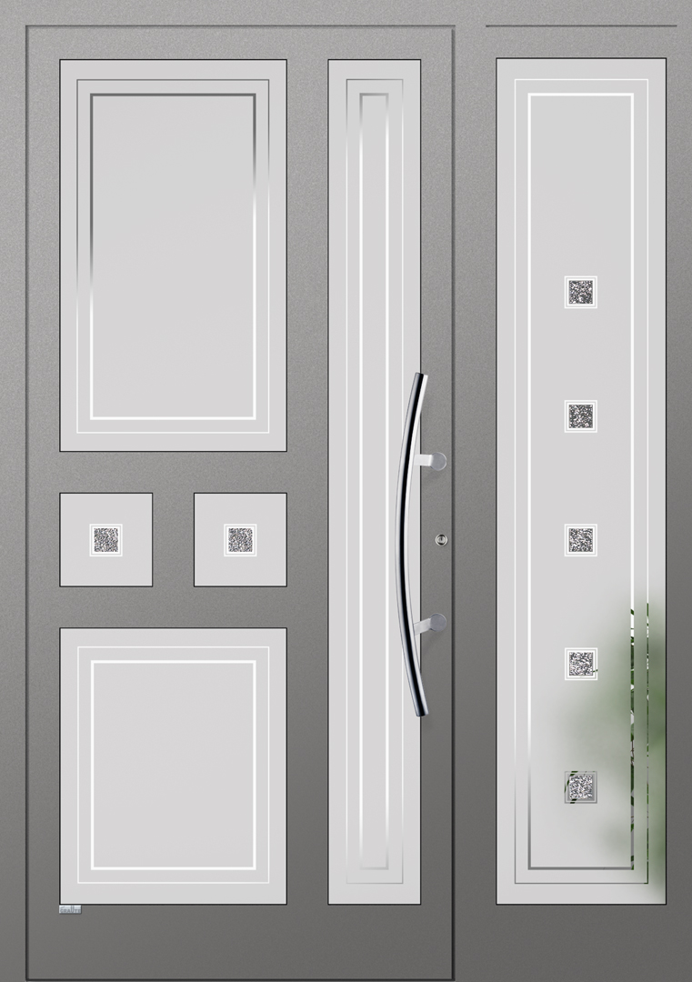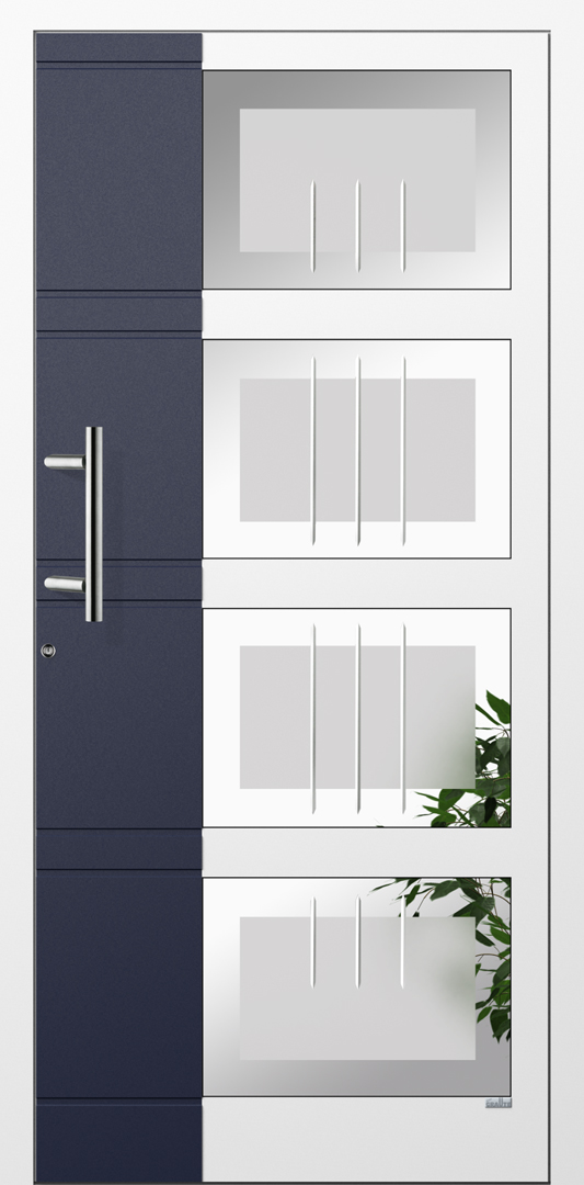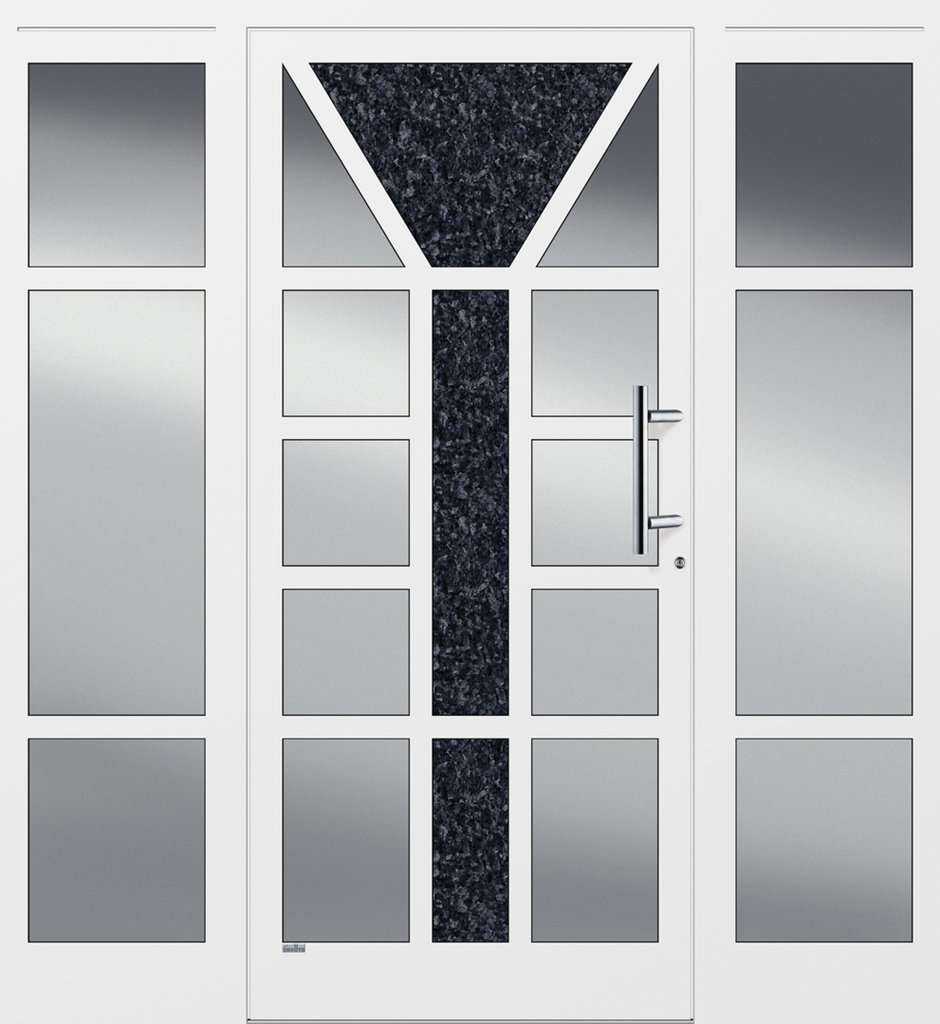 Elegante Haustüren sind für ein schnörkelloses Design bekannt. Besonders für Eingangsbereiche die eine lichtdurchflutende Konstruktion bevorzugen ist die Elegante Graute Türfüllung genau die richtige. Elegante Haustüren haben keine eingelassene Türfüllung sondern verfügt über Sprossen die bei Graute aus Aluminium bestehen. Jede Sprosse wird in einem aufwändigen Verfahren geschweisst und mehrfach Plan geschliffen sowie pulverbeschichtet. Die Freiräume von Elegante Haustüren werden mit besonders Schalldichten und thermisch abschirmenden Spezialglas geschlossen.