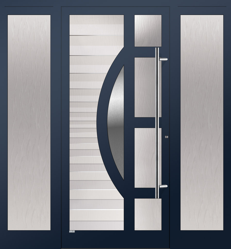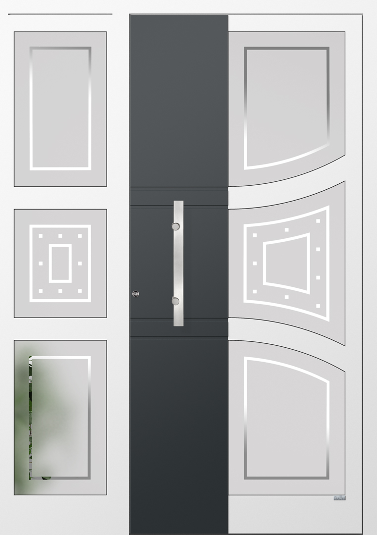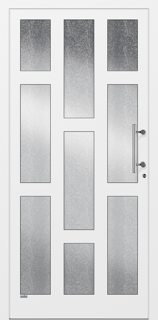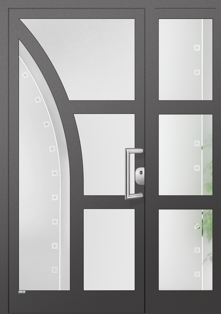 Elegante Haustüren sind für ein schnörkelloses Design bekannt. Besonders für Eingangsbereiche die eine lichtdurchflutende Konstruktion bevorzugen ist die Elegante Graute Türfüllung genau die richtige. Elegante Haustüren haben keine eingelassene Türfüllung sondern verfügt über Sprossen die bei Graute aus Aluminium bestehen. Jede Sprosse wird in einem aufwändigen Verfahren geschweisst und mehrfach Plan geschliffen sowie pulverbeschichtet. Die Freiräume von Elegante Haustüren werden mit besonders Schalldichten und thermisch abschirmenden Spezialglas geschlossen.
