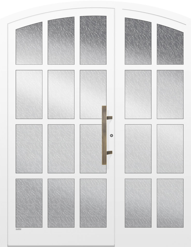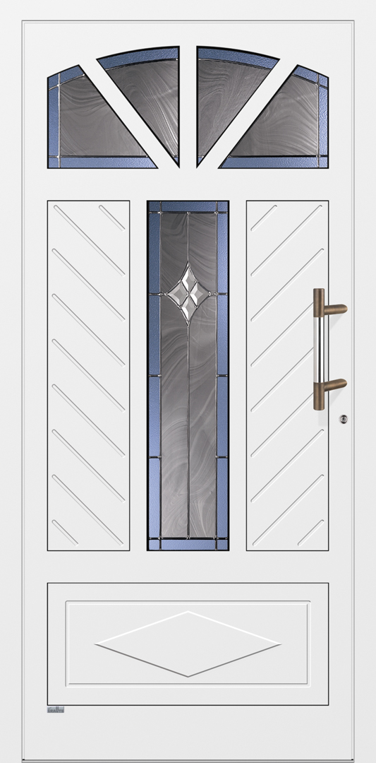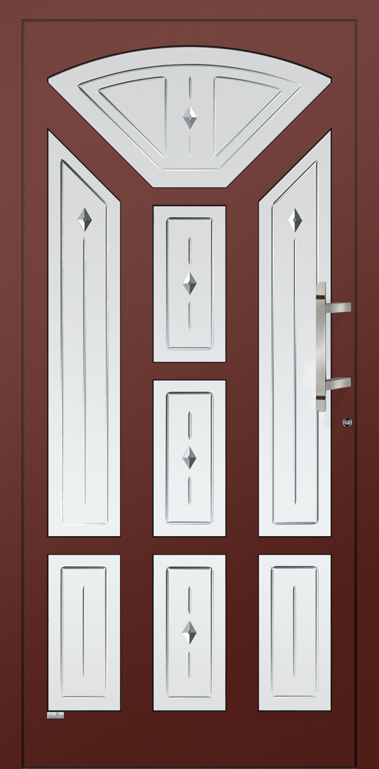 die individuelle Traumhaustür zu gestallten. Insbesondere Haustürmodelle mit Sprossen unterschiedlicher Breite, die in gebogener oder gerader Ausführung aufeinander treffen, erhalten durch die Eckverschweißung Klasse und Perfektion.