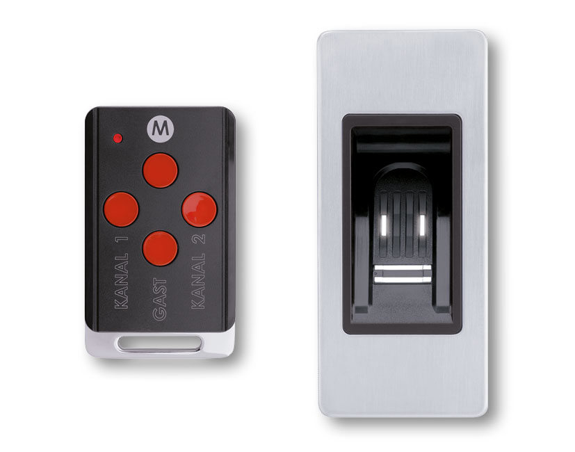 Die Ansteuerung kann über einen Funkhandsender, einen Transponderschlüssel oder über einen Fingerscanner erfolgen.