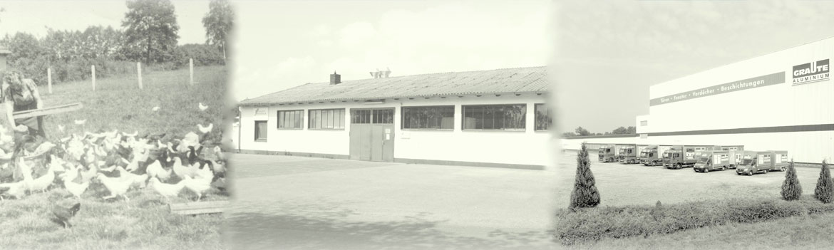 Gründung als Einzelfirma durch Herrn Johann Graute, Fenster- und Türenherstellung aus Stahl und Stahl-Aluminium auf dem elterlichen Bauernhof