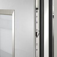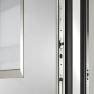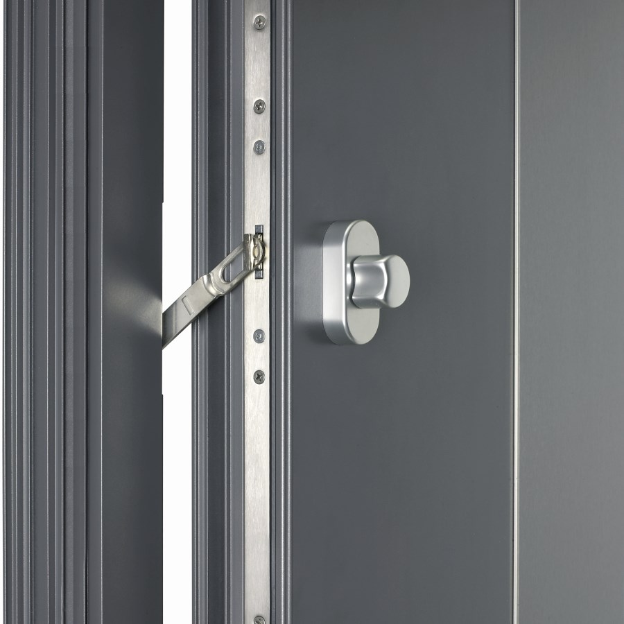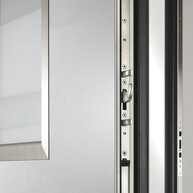 Das optional lieferbare 7-Punkt-Schwenkriegel-Bolzenschloss oder 3-Punkt-Automatikschloss mit Selbstverriegelung wird auf Wunsch mit einem integriertem Sperrbügel ausgestattet, der sich von außen bei geschlossener Haustür komfortabel mit dem Schlüssel über den Hauptschließzylinder öffnen lässt. Die Öffnungssperre ermöglicht es Ihnen, Ihre Besucher zunächst in Augenschein zu nehmen, bevor Sie die Tür vollständig öffnen.